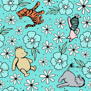 Classic Pooh and Friends Nursery Floral Bright Aqua