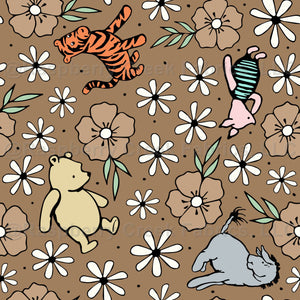 Classic Pooh and Friends Nursery Floral Soft Brown