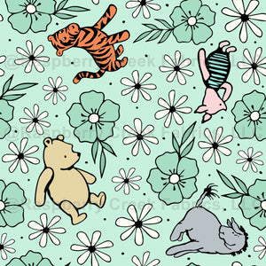 Classic Pooh and Friends Nursery Floral Soft Mint Green