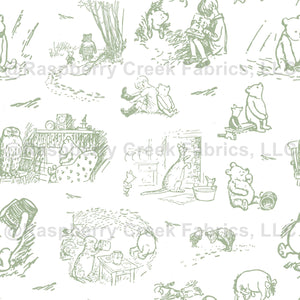 Classic Pooh and Friends Toile Sketch Scenes Sage Green