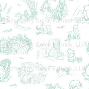 Classic Pooh Sketches Pale Mint Green on White