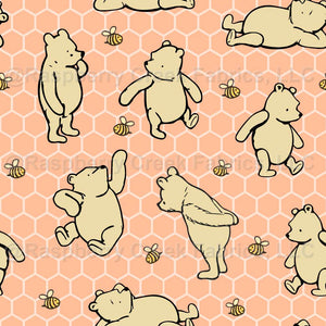 Classic Winnie the Pooh and Bees On Peach Honeycomb