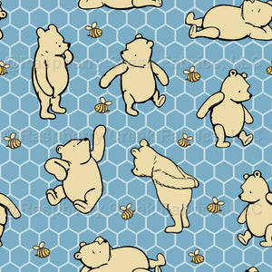 Classic Winnie the Pooh and Bees on Vintage Blue Honeycomb