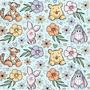 Classic Winnie the Pooh Piglet Tigger Eeyore Floral Blue