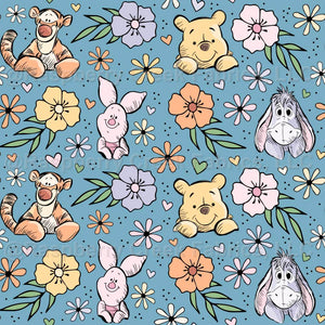 Classic Winnie the Pooh Piglet Tigger Eeyore Floral Vintage Blue