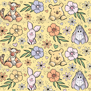 Classic Winnie the Pooh Piglet Tigger Eeyore Floral Yellow