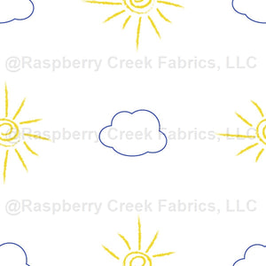 Clear Sky - Sunshine and Rainbows Collection - Summer - Sun - Clouds - Chalk Drawing - Kids - Coloring - Art - Cornflower Blue - Corn Yellow