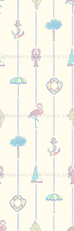 Perfect for a nursery or kids room.This nautical preppy pattern is THE perfect pick for baby clothes! This adorable design is packed with classic preppy stripes, cute flamingos, tiny sailboats, pretty conch shells, palm trees, classic anchors, and cute crustacean lobsters. It's a whimsical seaside wonderland that adds a splash of joy and style to your little one's world. Dive into east coast cuteness and let the nautical adventures begin!