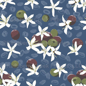 Coffee Cherries and Blossoms with Coffee Beans in blue - Coffee Time Collection