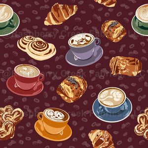 Coffee Time on plum - coffee mugs, latte art, pastry - Coffee Time Collection
