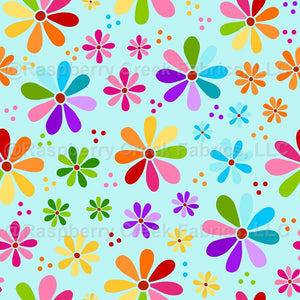 Color The World With Kindness Rainbow Daisy Flowers on Blue
