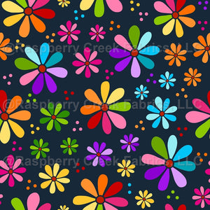 Color The World With Kindness Rainbow Daisy Flowers on Dark Navy