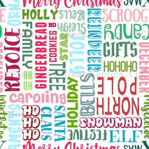 Colorful Christmas Wordplay Word Cloud on White