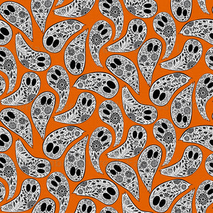 Colorful Floral Halloween Ghost Black and White on orange background by denesannadesign