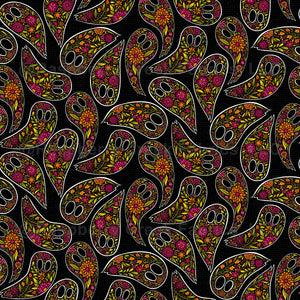 Colorful Floral Halloween Ghost orange green pink on black background by denesannadesign