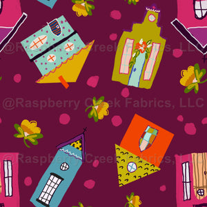 I love small towns, and these fun houses and churches would be a blast to have in a quilt, home decor, playrooms, and kids apparel! I loved drawing them, and the colors are classic.
