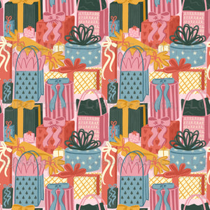 Hand-illustrated bags, boxes, ribbons and bows! Assortment of holiday inspired gifts to share with friends this Christmas season.