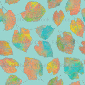 Manipulated photo and monoprint, both by the artist, combine for this autumnal, yet unexpected leafy print.