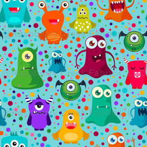 Colorful Monster Mash and Polkadots on Aqua Blue