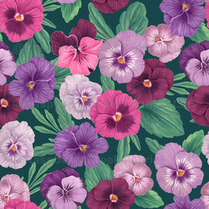 Colorful pansies on dark greenish blue