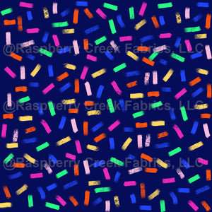 Colourful rainbow confetti design on dark blue background. A simple design to co-ordinate with Fiesta confetti design.