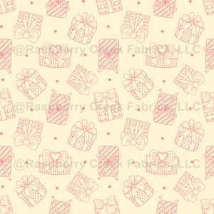 A coquette aesthetic pattern featuring lineart illustrations of delightful gift boxes adorned with dainty ribbons.