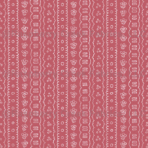 Delicious warm coral and off white feature in this lacey broderie pattern, for baby apparel, nursery decor and more.
