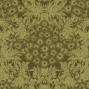 Cosmos damask in rustic greens.