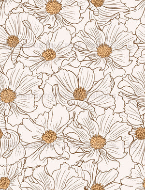 Cosmos floral pattern - creamy white, yellow, and brown - neutral colors
