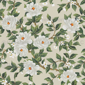A pretty and romantic rambling floral pattern, set on a soft coloured background.