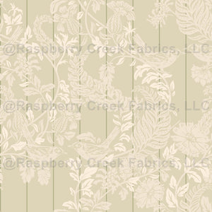 Modern romantic Renaissance pattern with leaves, flowers, loving birds. Charming country house style and sophisticated vibe. Based on historical references. Perfect for English cottagecore. Collection inspired by Shakespear's Midsummer Night's Dream.