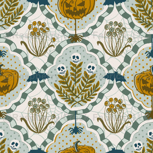 Farmhouse Halloween neutral grey, vintage vibe, fabric for kids halloween costume and home decor.