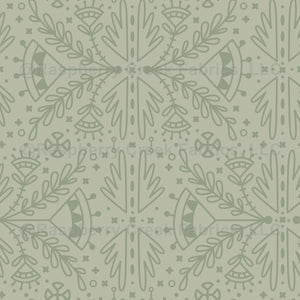 Country Farmhouse Sage Green Wallpaper with Darker Green Floral Garden Doodles