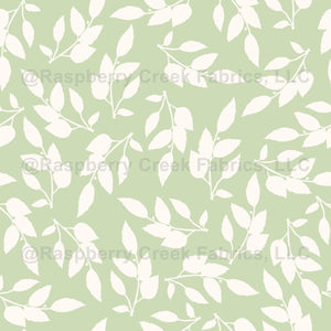 Cream Botanical Leaves on a Pistachio Green Background Wallpaper