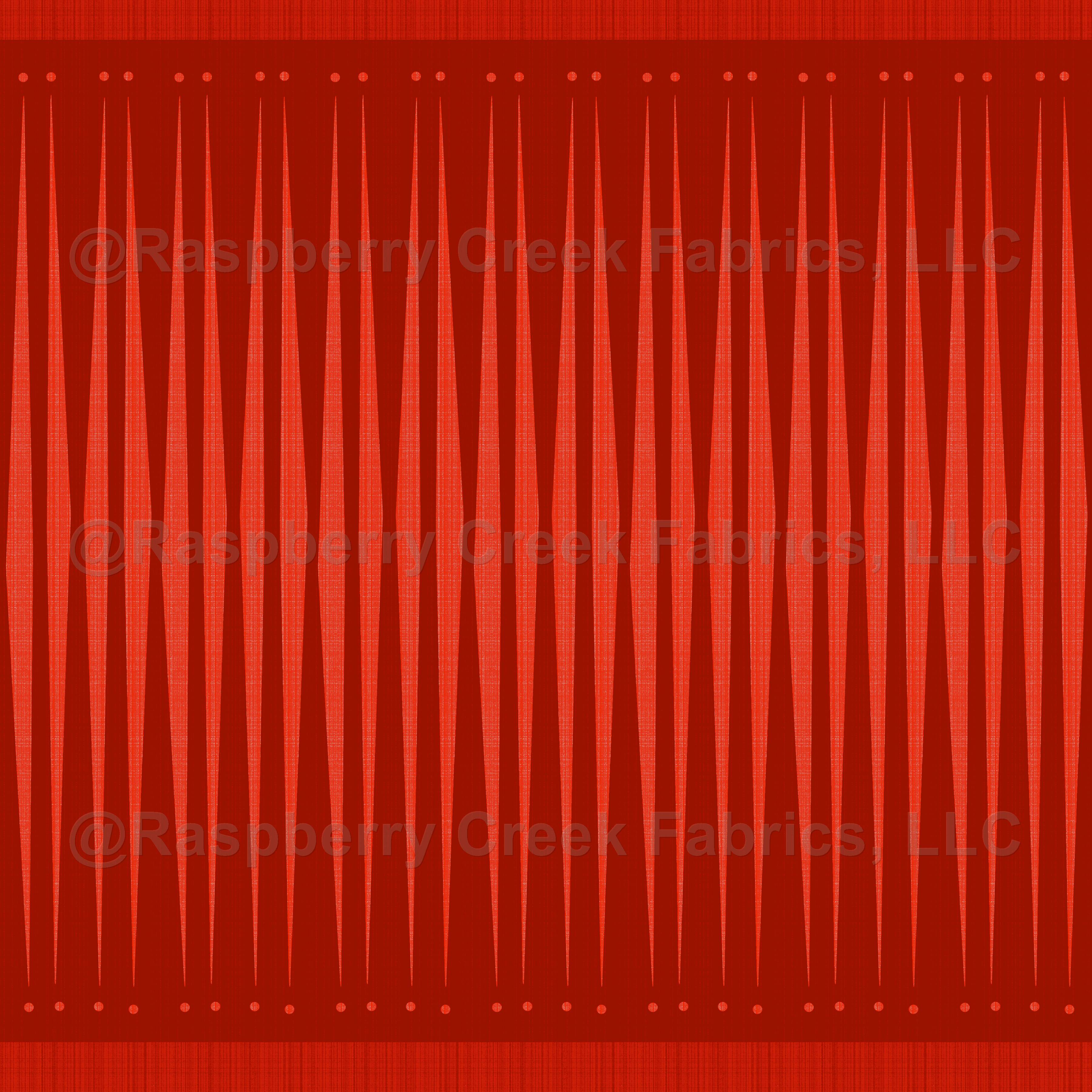 Crimson red elongated diamonds. Art Deco inspired, deep cranberry reds. Geometric angled stripes, with bands bordering diamonds at intervals.