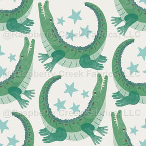 Crocodiles (one sunny day) watercolor crocs with blue stars.