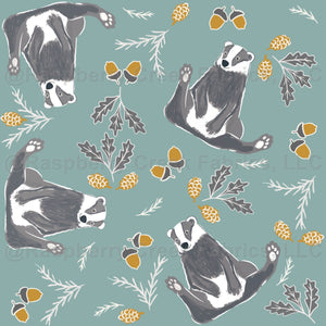 Cute badgers and acorns | mustard, sage green, grey, white | boys unisex baby and kids