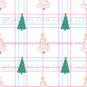 Cute Christmas trees, on white pink blue pink plaid, hand drawn stripes, Blue Christmas reindeer collection