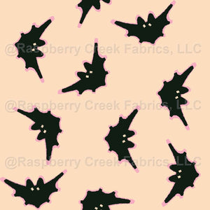 Cute Halloween Furry Bats- Playful Black Bats on orange with pink outline
