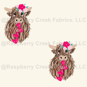 Cute hand drawn highland cows with flowers and bows for Valentines day
