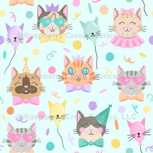 Cute Kawaii Kitty Cat Faces With Bowties and Party Hats on Blue