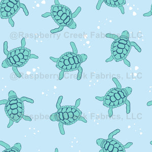 Cute turtles scattered on blue