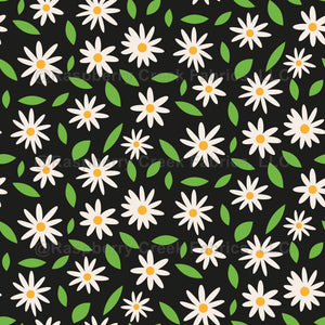 This is cute hand drawn white daises pattern with green leaves on black background.