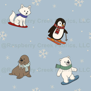 Cute Winter Animals Skiing and Snowboarding