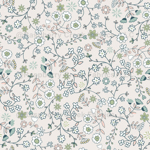 Dainty ditsy flowers in warm neutral colors on ivory background.