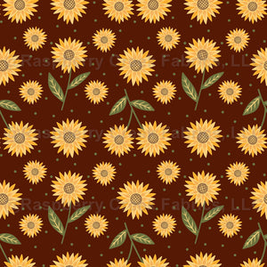 A pattern design featuring dainty sunflowers on an elegant auburn background.