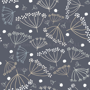 dainty tossed dill blossoms on dark dusty blue