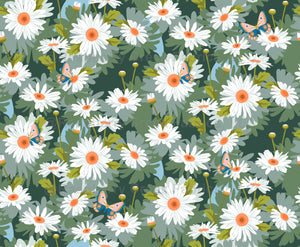 Vintage-style paint-by-number daisy garden filled with butterflies.
