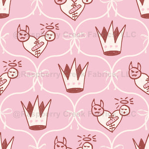 Damask coquette pink crown and broken heart with demon and angel