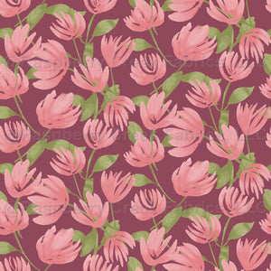 Dancing pink blooms on a deep pink background in a timeless romance elegant layout.